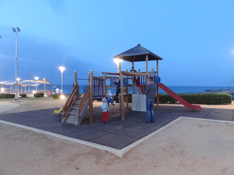 Вечером все выходят на променад вдоль моря, здесь одна детская площадка: