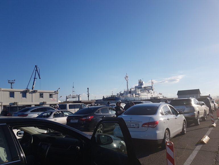 минут 45.. мы были 10 июня .. было еще прохладно и не особо много народу.. как сейчас обстановка не знаю. паромы курсируют один за другим ..