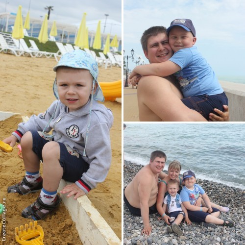 На пляж ходили практически каждый день, кроме в день посещения Сочи-парка. На пляже по большей части Темик бегал и бегал, а мы догоняли. Увидеть картину, что Тема лежит или сидит практически не удавалось. Так что перед вами редкий кадр тихого Артемки.
