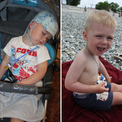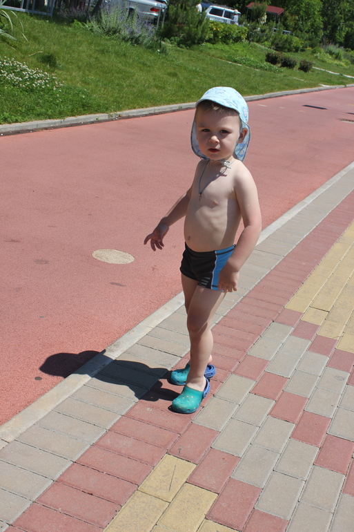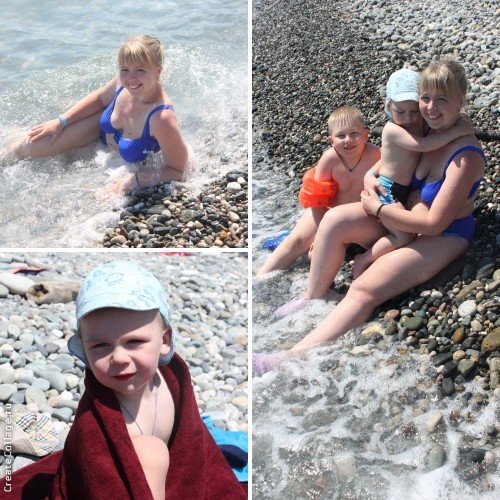 На море несколько раз видели дельфинов, жалко, что сфотографировать не получилось. Далеко, объектив увы у фотоаппарата не тот. Но красиво так прыгали. Темик моря пугался, все-таки волны. Зато из бассейна было не вытащить. В море все равно накупали его, пусть и на руках. Обгореть на солнышке тоже успели и никакие крема нам не помогли. Поэтому пантенол нам был в помощь, ну и сметанка тоже.