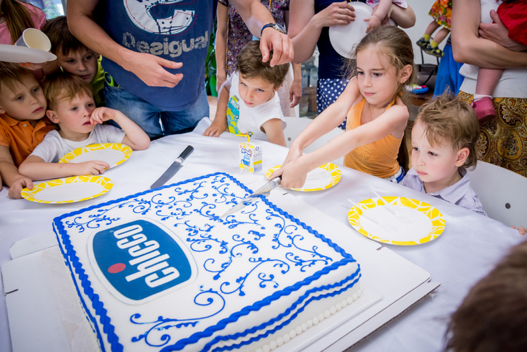По завершению мастер-класса у деток постарше , где каждый делал себе сувениры в виде специальных растений в стаканчиках, нам разрезали большой торт. Это был не тот торт, который обычно состоит из безвкусного жирного крема, а настоящий шоколадный - по вкусу Прага) Как организатор его донес и не уронил - для меня загадка) Так как дети окружили новоявленного волшебника (без вертолета и эскимо), но даже лучше - торт был наивкуснейший!