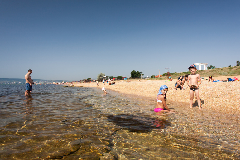 Рано утром мы попрощались с Курортным, Керчью и нашим лагерем. Для начала мы решили заехать в Феодосию. По пути остановились искупаться. Пляж нам понравился, хотя вода в Черном море была еще прохладной.