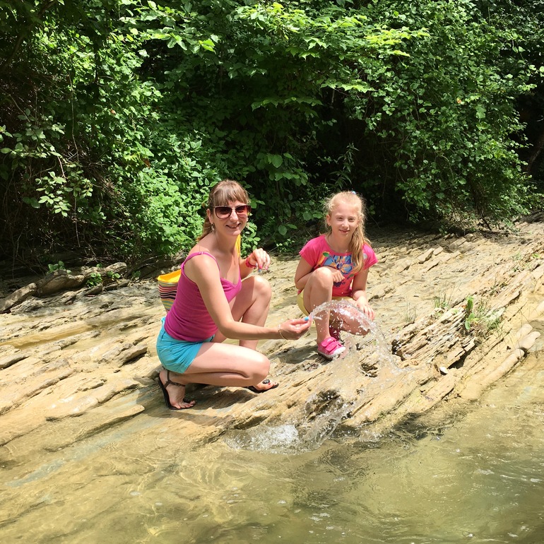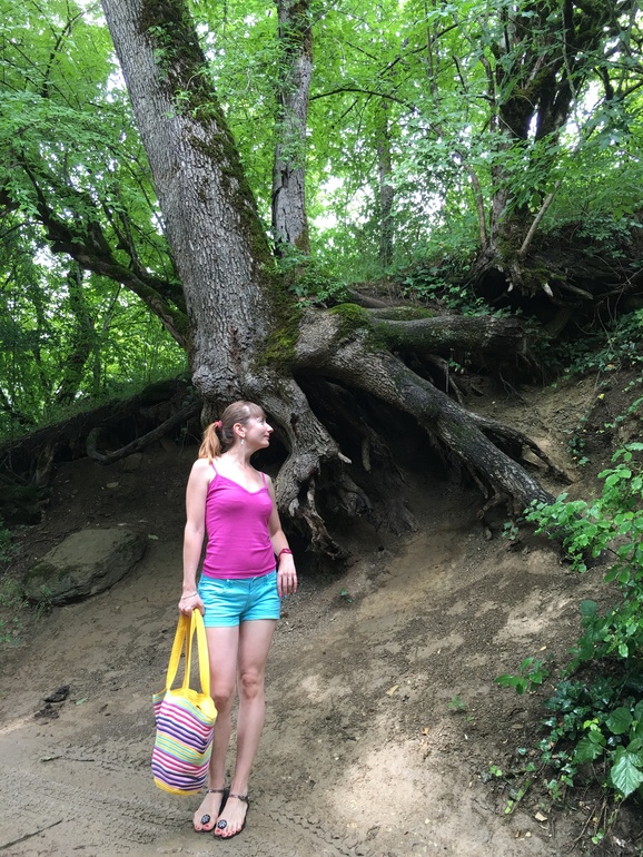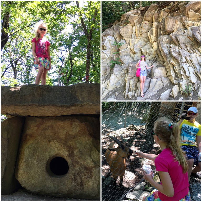 Обедали в лесу в кафешке. Потом поехали к дольменам. Экскурсовод много интересного рассказывала. Затем напились вина на бесплатной дегустации и домой