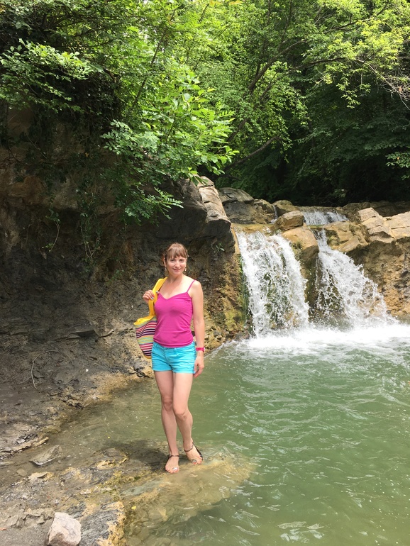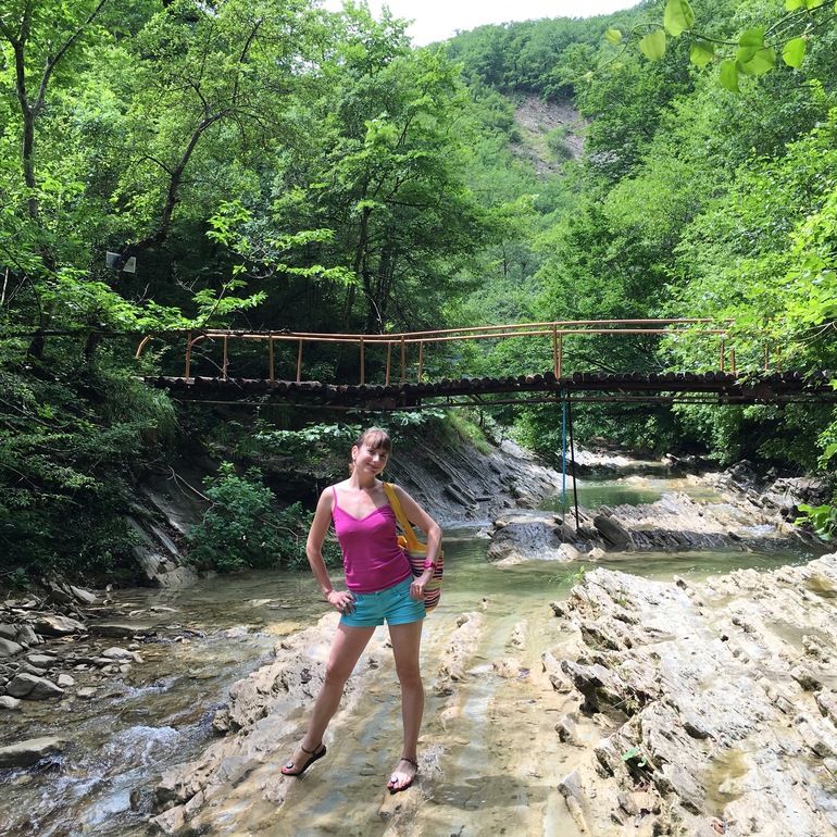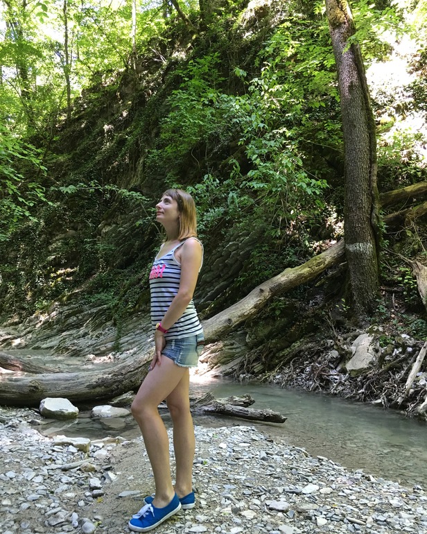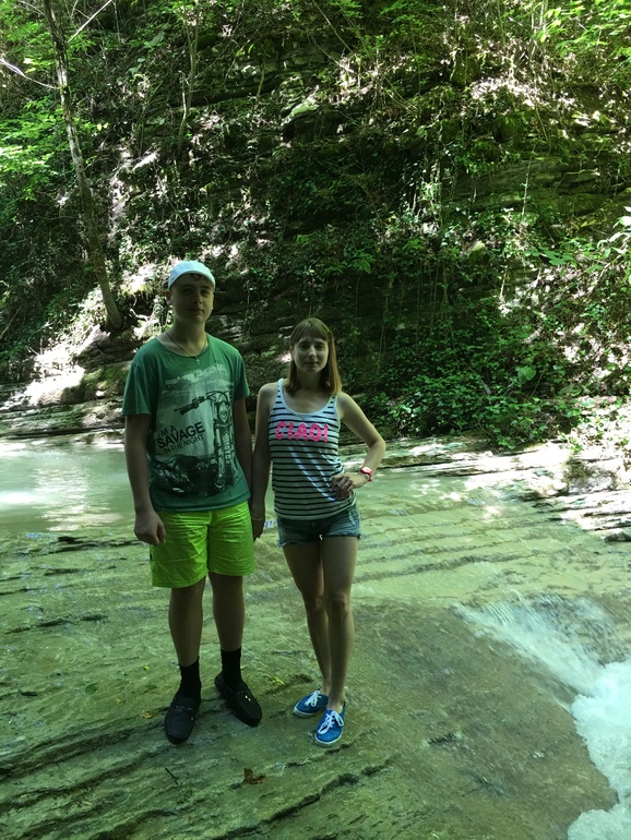 Живописное местечко. Вообще природа там очень красивая, горы потрясающие! Это пос. Возрождение. Есть стоянка для машин, кафе, экологический сбор 250 руб. Все тропы ведут к водопаду и чашам для купания, и без экскурсовода не заблудитесь)))