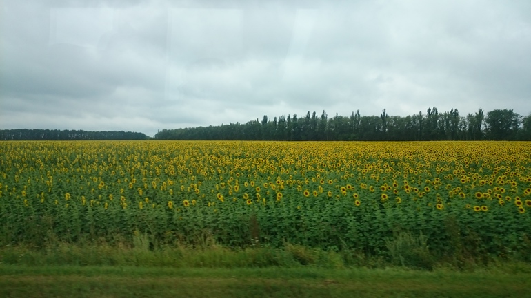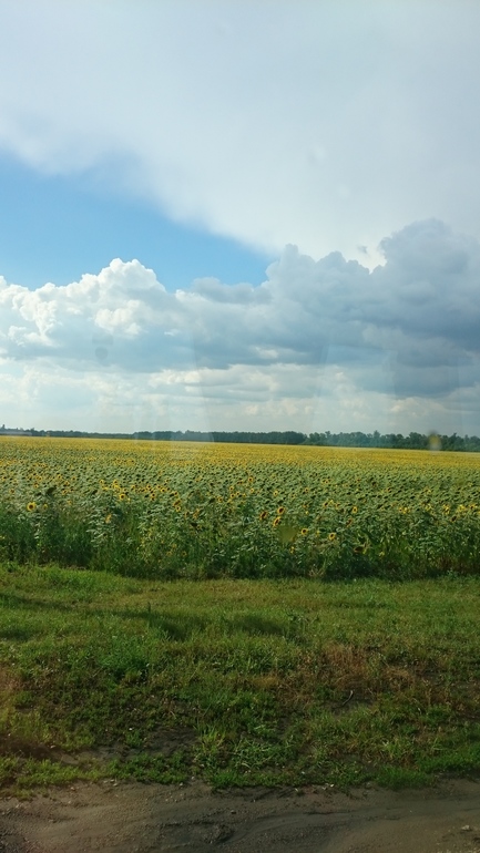 едем в деревню Костомарово, это 180 км от Воронежа, мимо красивых полей с подсолнухами и пшеницы.