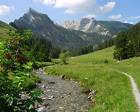 это сайт ( pdf) про эту экскурсию- поход. Вход бесплатный, выход оплачивается по желанию , так и написано... такса для взрослого 4 доллара. Если вы с детьми будете когда нибудь в районе Интерлакена, вернее даже между ним и Туном, то заверните вверх в горы... проход разрешен и с собачками:-) С колясками- только до ручья.