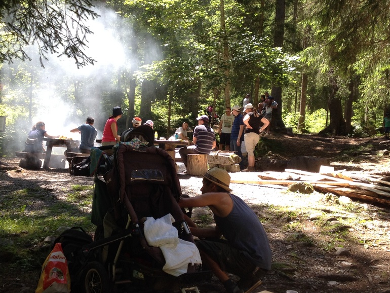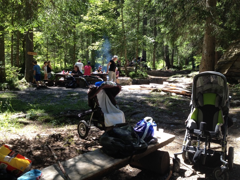 Рядом с нами, где мы жарили наши сардельки, сидело 2 семьи.. Вернее сидела то одна, а от другой стояли около лавочки только вещи. И что то мне странной показалась одна из 2 стоящих рядом колясок.