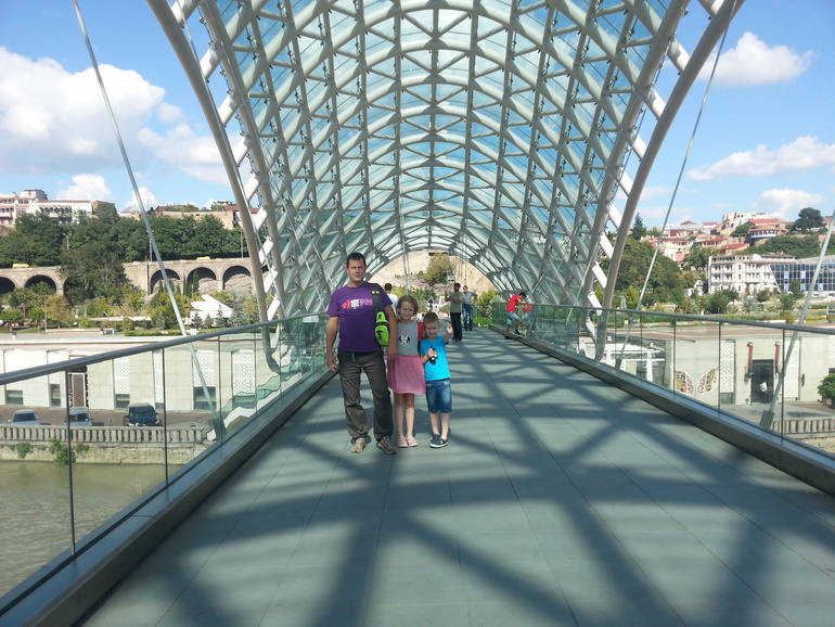 не буду утомлять долгими рассказами где мы были. скажу кратко - почти везде. и на канатке, на метро, на фуникулере и на маршрутке покатались. и в детский парк сходили, катались на колесе обозрения (где в кабинках дует кондей!). И были на Черепашьем озере,и купались в Тбилисском море. Сгорели! жара была +40град. Нигде так не было жарко за все наше путешествие))))