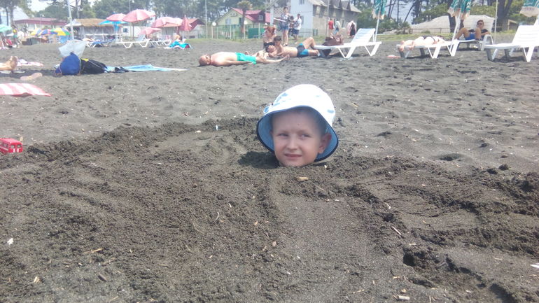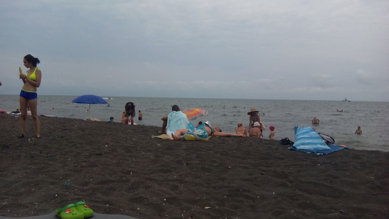 Самое непредсказуемое на море в Грузии - это погода! это ужос, это просто кошмар))) Утром жарит солнышко, потом резко ливень тропический, потом опять жарит, потом пошла морось как из душа. Белье за ночь не высыхало. Все влажное. Но несмотря на затянутое небо было очень тепло и все купались и даже под дождем)))Черный песок мега липучий. Он постоянно был в номере - даже если мы все тщательно промывали.