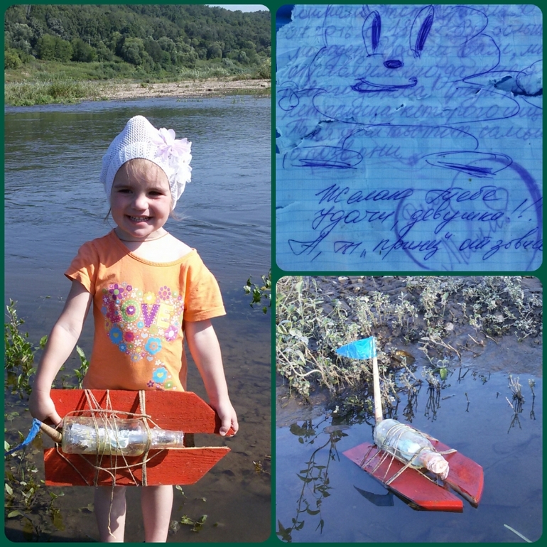 На острове нашли кораблик. Видимо в более полноводное время зацепился за кустики и остался на островке. Это уже вторая записка. Написанная теми, кто нашёл кораблик до нас. Первоначальная не сохранила чернил, или карандаша ,или фломастера. У нас ,к сожалению, не на чем было написать и чем написать((( но мы получше заклеили горлышко и пустили кораблик на большую воду))