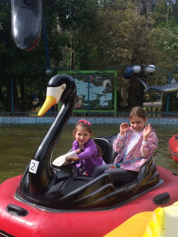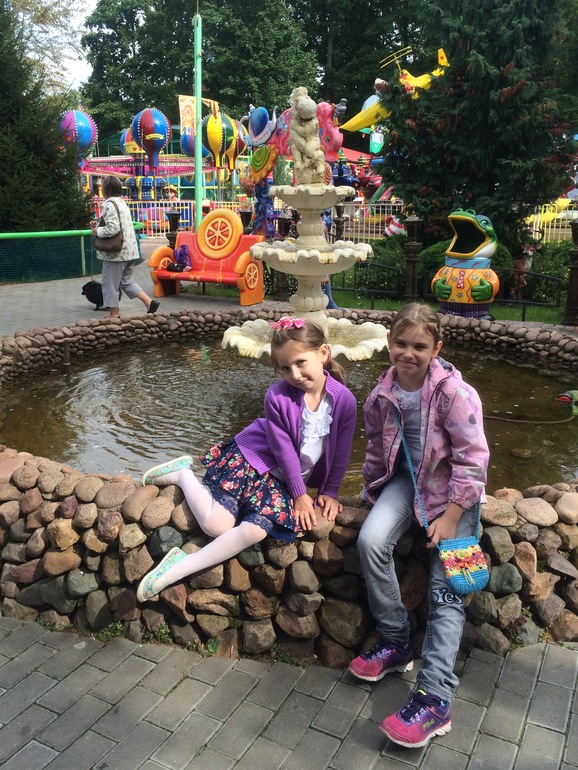 Я склонялась к первому варианту. ТЦ,кафе под боком,независимость от того,пойдет ли дождь...Но в пользу второго было то,что разгулялась-таки погодка,и вроде бы как последние летние денечки лучше проводить на воздухе... И решили,что прогулке быть. Девчонкам на тот момент вообще было фиолетово,увози за сто морей,лишь бы куда-нибудь поехать. И еще мороженое...Так что в Кидсбург как-нибудь в другой раз,в сезон дождей,скатаемся))