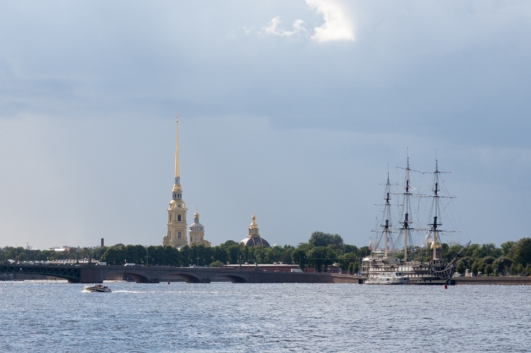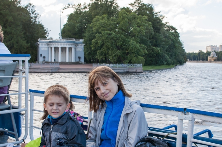 Ближе к вечеру, уже вернувшись в Петербург, мы совершили еще одну интересную прогулку. На этот раз водную. Маршрут экскурсии называется "Забытые острова". С воды мы увидели Крестовский, Елагин и другие невские острова. Повезло, что все, что было интересно увидеть, мы посмотрели до дождя. А под крышу уже в самом конце спрятались, когда возвращались.