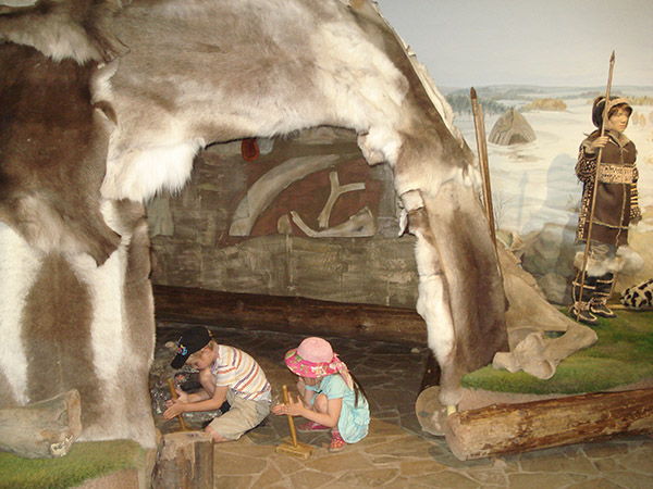 Весь первый этаж Палат занимает детский музейный цент. В нем несколько небольших залов: "Путешествие в каменный век". В зале воссоздано жилище древнего человека, элементы орудий. Можно узнать как жил древний человек, можно попробовать добыть огонь.