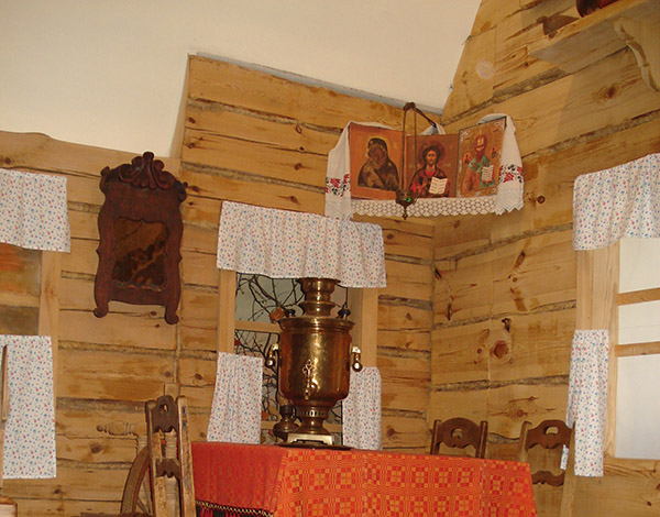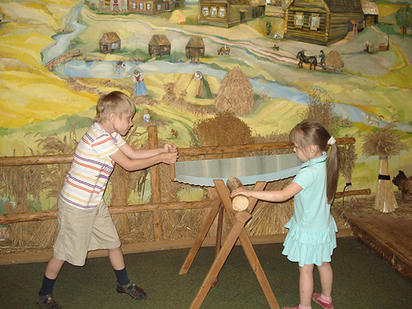 Экспозиция "Русский дом" рассказывает про крестьянский быт. Там выставлены предметы была и орудия труда крестьян. Воссозданы части крестьянской избы.