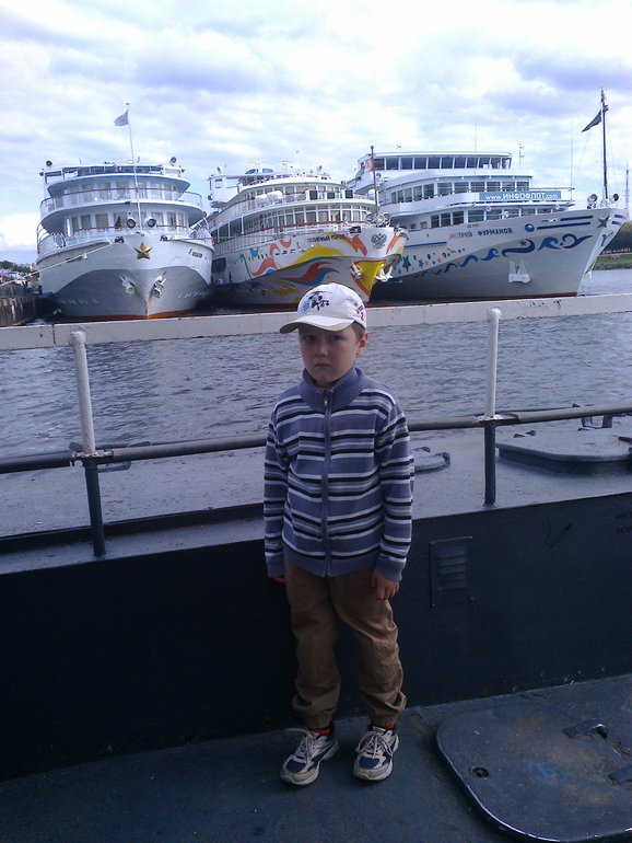 Это фото сделано уже после круиза. По возвращении на твердую землю уже никуда не надо было спешить, и можно было устроить фотосессию на причале. А перед отплытием не было времени ни то, что сделать снимок теплохода, а просто остановиться перевести дух. Мы очень сильно опаздывали, и была вероятность того, что наш круиз не состоится.