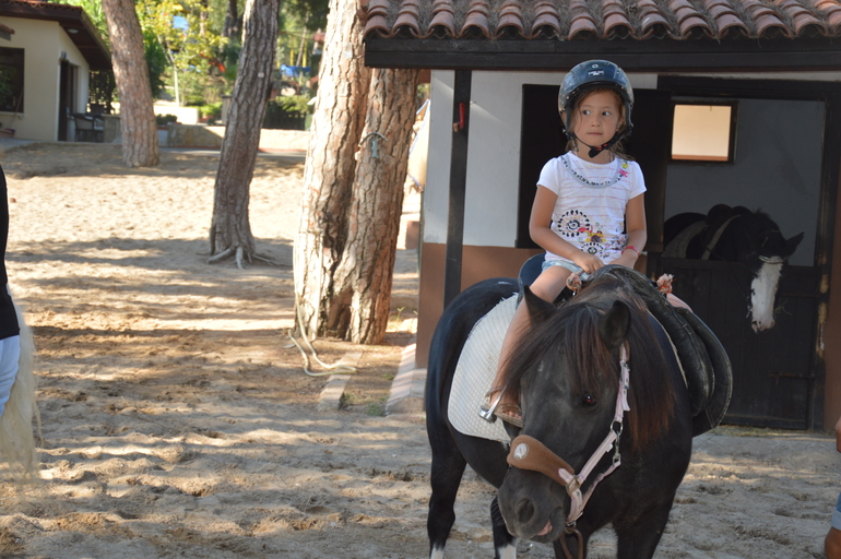 А каждую среду можно было поехать с аниматором в минизоопарк и покататься на лошадках. Ника ездила стабильно каждую среду. Один раз мы с Захаром присоединились.