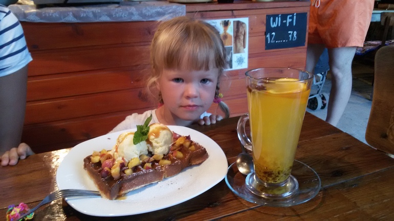 6. В самом поселке есть магазины, аптека, замечательный рынок и много кафешек. Особенным и самым любимым для нас стало кафе «На чемоданах». У них потрясающие вафельки, вкусный чай и душевная музыка!