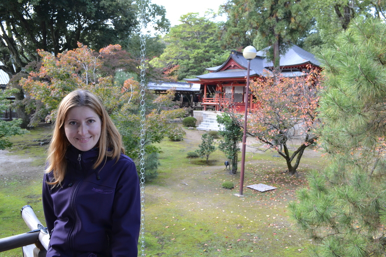 Вбежали мы в сам храм за 10 минут до его закрытия, промчали как вихрь по самому замку с толпой таких же «опоздак» как сами , посмотрели на японский минимализм помещений, послушали соловьиные полы и вышли в сад. Сад, как везде в Японии - изящен и красив)) Промчали мы по-быстрому по территории замка, по фотографировались и всех стали выпроваживать.