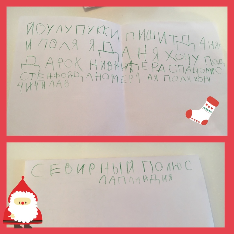 В первую ночь к нашим детям прилетел Йоулоупукки, поздравил их с прошедшим рождеством)) утром дети подарки нашли на окне, радости не было предела, т.к. письмо на СевИрный полюс всё таки дошло))))) праздничное настроение появилось, оставалось дождаться снега)))