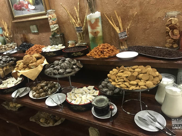 Ужин начинается в 19.00. Для меня, при выборе отеля, питание играет не последнюю роль и, читая отзывы типа "голодными не останитесь" или "прекрасный завтрак" сложновато сделать для себя какие-то выводы, не правда ли ? 🤔 поэтому, вот вам несколько фото, чтобы можно было составить свое собственное мнение.