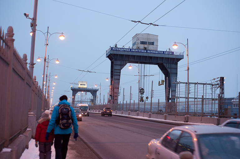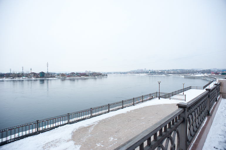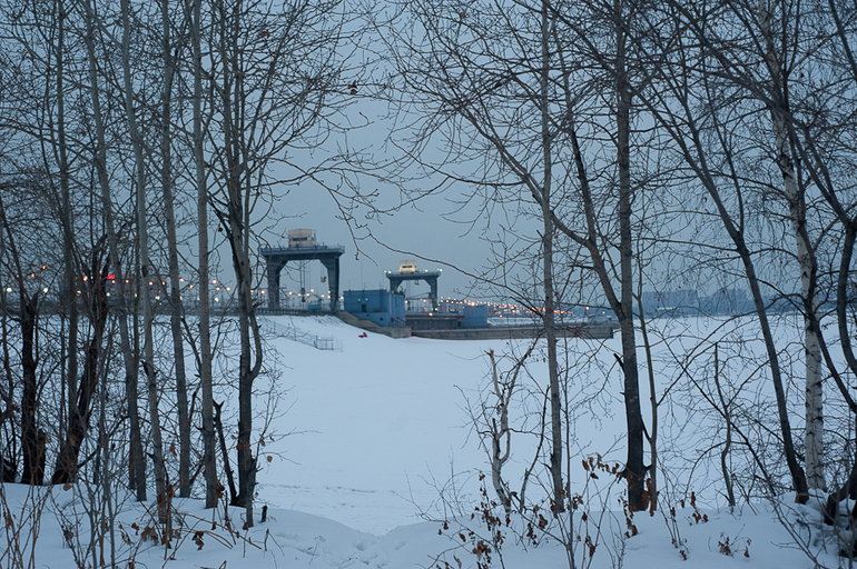 8. Ангара. Река красивая. Большая и широкая. С одной стороны ГЭС течёт, с другой- замерзала. Хотели посмотреть ГЭС, но не нашли ракурса. С самого моста не видно. А сбоку-заборы. Т.к.охраняемая территория.