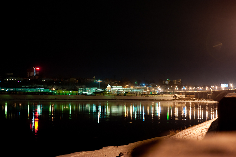 Ангара ночью.