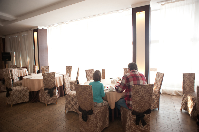 Ресторанчик. В ресторане были завтраки и ужины, кормили много, довольно вкусно. На завтраки был то шведский стол, то стандартный набор. На шведском столе было много и каша и омлет и второе и салаты и пироженные) .