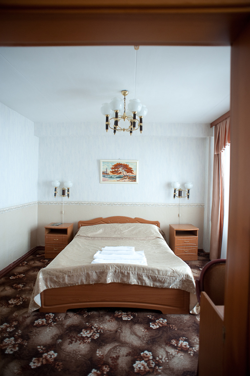 Это бывший "Интурист", сейчас внутри осталось все с советских времен, тем не менее, все чистенько, обои недавно переклеены и перекрашены на кривые стены))) . Единственное, что новое- пластиковые окна, все остальное требует капитального, а не косметического ремонта.