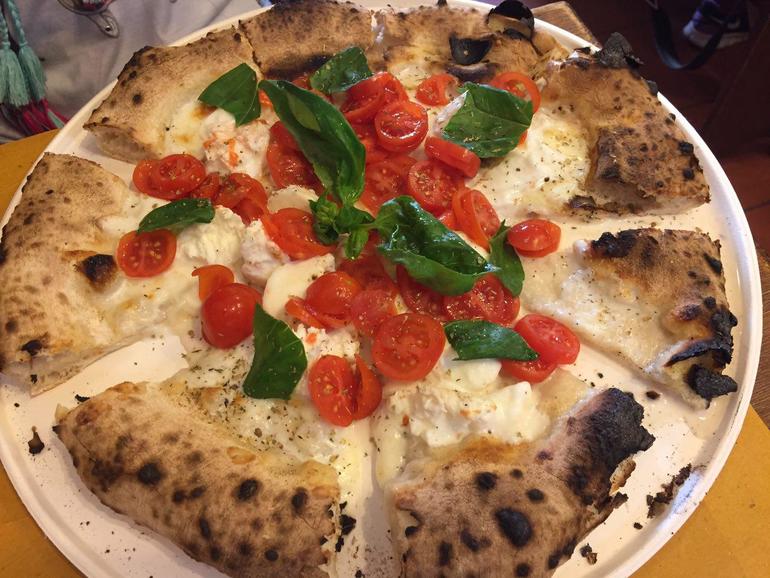 Но какая же там божественная пицца! Говорят, что самая вкусная пицца в Италии - в Неаполе. Но в Неаполе я такой вкусноты не ела)) Одну заказали многокомпонентную (похожа на те, что делают у нас)