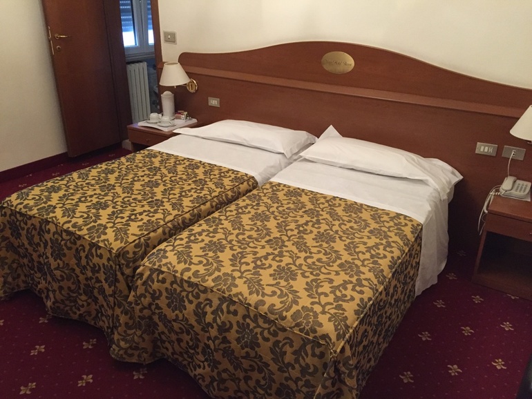 Т.к. в Вероне нам предстояла всего одна ночь и один день, бронировала отель рядом с вокзалом - Номер с завтраком стоил 68 евро. Идти от ж.д. вокзала 5 минут, от центра минут 20. Размер номера гораздо меньше, чем был во Флоренции, но для комфортного размещения все было. Отель стоит у не оживленной дороги, но нам повезло и окна выходили на задний двор.