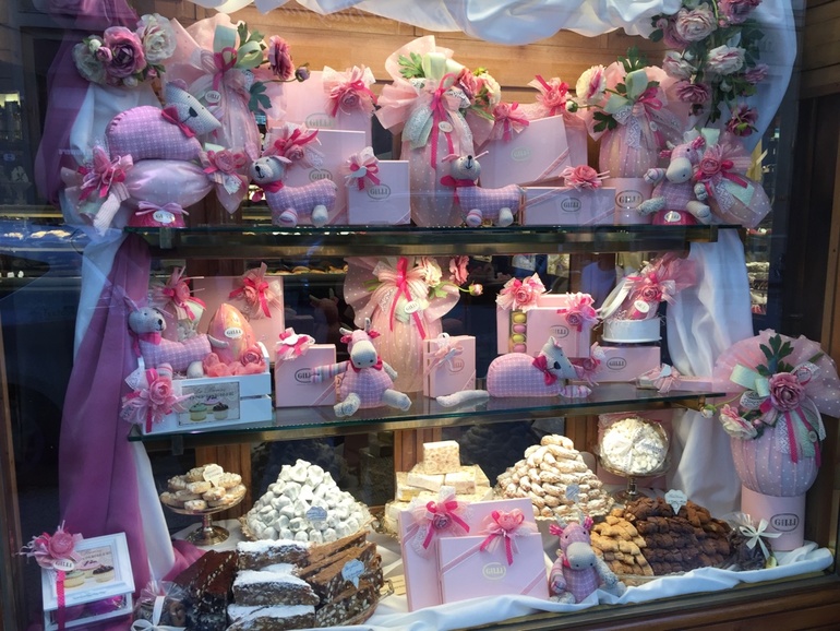Витрины, какие сказочные у них витрины! Не могу не показать красоту) Это витрина кондитерской GILLI, одной из старейшей во Флоренции.