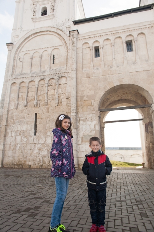 Позавтракали в Макдональдсе (точнее, наш папа позавтракал, мы брали только кофе и сок, еда была своя) и отправились в поселок Боголюбово. Там мы побывали в Покровском монастыре, увидели древние остатки дворца Андрея Боголюбского.