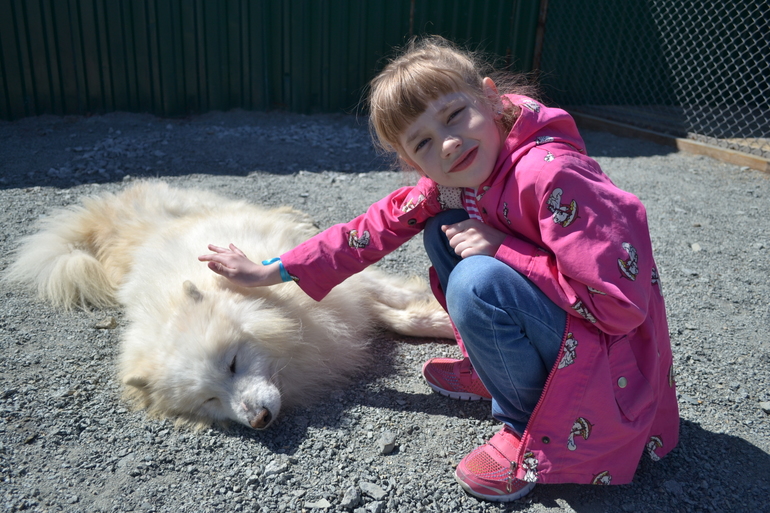 Хаски-центр «Аквилон». Шикарное место, если есть возможность, лучше туда ехать на целый день. Они начинают работать с 10 утра, билет на весь день стоит 300 рублей с человека (дети до 3х лет бесплатно), в течение дня проводятся мастер-классы (мы сделали индейский амулет), игры на свежем воздухе, можно пойти к кузнецу и выковать на память монетку (за отдельную плату), заходы в питомник каждые полтора-два часа (в определенное время всех собирают и ведут к собачкам). Есть кафе, где можно покушать, достаточно вкусно, но не скажу, чтобы очень дешево))) Собачки в питомнике - хаски и самоеды. Хаски не очень контактны, при попытке приблизиться уходят, избегают общения. Самоеды снисходительно относятся к тому, что их гладят и тискают. В питомнике во время общения присутствует кинолог и аниматоры, которые рассказывают разные факты о породах, отвечают на вопросы. Также на территории есть качели, горка и сувенирная лавка.