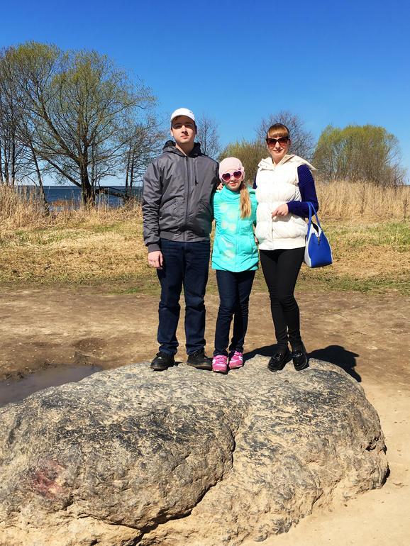 Складывается впечатление, что никого нет)) Народ есть, на самом деле. Камень практически постоянно облеплен туристами. Наш бесцеремонный папа