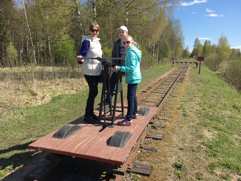 За отдельную плату (те же 150 руб. взр и 50 школьники) можно покататься на ручной дрезине. Решили прокатиться, должны же хоть какие-то впечатления остаться))