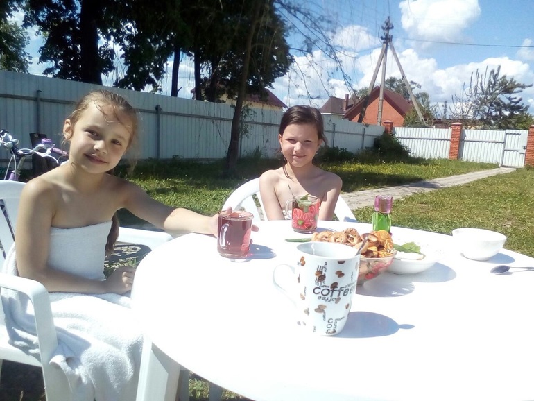 А мы активно и хорошо проводим время на даче. предлагали дочке поехать на море, а она сказала не хочу , снимите опять дачу где мои друзья, ну что ж лишь бы ребенок был счастлив . 😊😊😊