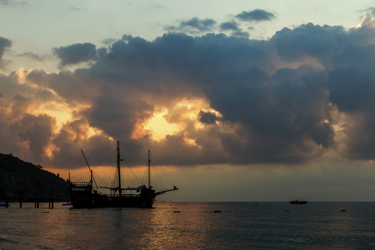 Пока наш папа плавал с аквалангом, мы с Алисой совершенно случайно попали на пиратский корабль! Вместе с аниматорами и толпой детей отравились искать сундук с кладом! Вот именно на этом корабле!