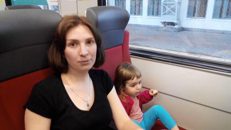 Путешествие началось с приключениями... Улетали из Внуково, живем в САО. На кануне вечером заказали такси на 10 утра. В 10 утра ни такси, ни звонка от них. Звоню сама - ой, он в пробке. Блиин, а вот позвонить и предупредить не судьба!! Как я на них кричала. Такси Таксан, вообще не советую! Сволочи!! Другое такси не удалось вызвать, время поджимало, а все предлагали ждать 15-20 минут. Плюнули, бросили коляску дома, схватили два чемодана, я Алиску на руки и побежали под дождем к метро на аэроэкспресс. Как мы бежали...Из дома вышли в 10.20, а экспресс отходит в 11.00. На входе в Киевский вокзал мужа тормознули...не понравился охранникам наш штатив и провода в чемодане))) Уф, успели, бегом на поезд. Семейный билет (2 взр + 1 реб) обошелся в 950 руб.
