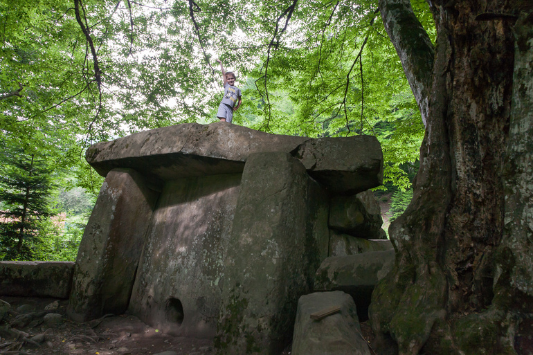 В очередной раз задумались над загадками дольменов, увидев это каменное сооружение. Но так и не сошлись во мнениях, что это и зачем.