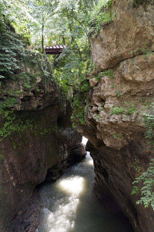 Но прежде, чем ехать в коттедж, мы заехали в Каменномостское. Сначала побывали в Хаджохской теснине. Это ущелье горной реки, над которым оборудована экотропа.