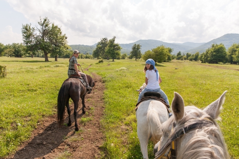 Вернувшись в коттедж, мы пообедали и отдохнули. В планах на вторую половину дня была конная прогулка (только для Иры и папы, я как-то с лошадками не очень), но началась гроза и ливень. Пришлось поменять время выезда, дожди здесь недолгие. Он закончился примерно через час, поэтому для катания была отличная погода - не было жарко.