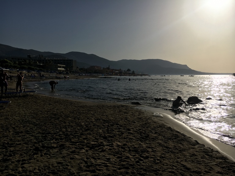 В остальные дни просто , когда наскучит, прыгали в машину и ехали на какой-нибудь пляж. Ездили плавать Малию. Приятная деревушка, оживленная. Пляжи песчаные, заход хороший, но встречаются и места с водорослями, причем большим количеством и камнями.