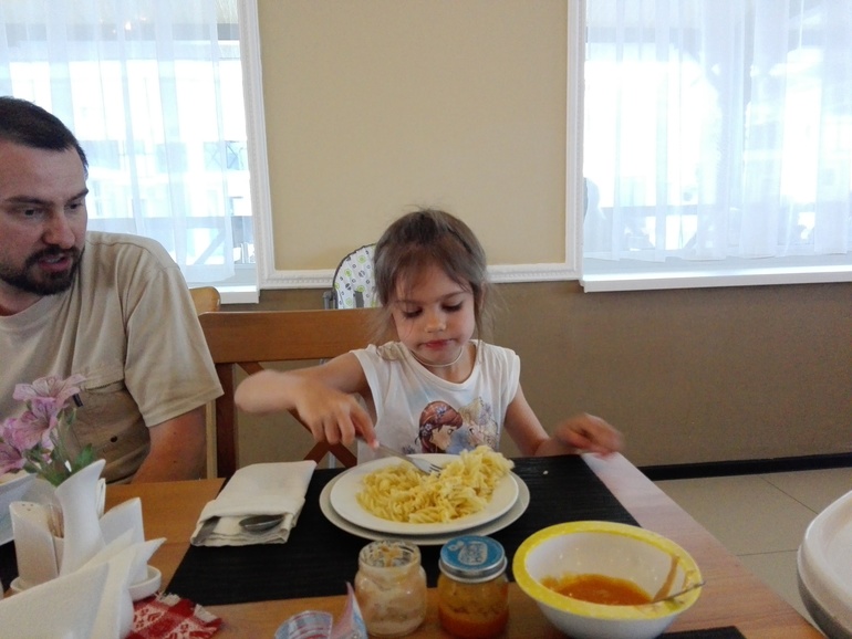 Порадовало много стульчиков в столовой детских штук 10 точно мы умудряемся сесть на татамию))Питание включено завтраки. Обед, ужин по желанию. Кормят вкусно, комплексные обеды диетические, есть детское меню, обычное меню тоже неплохое.