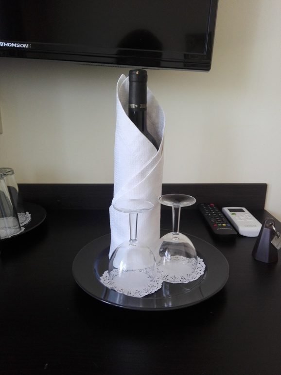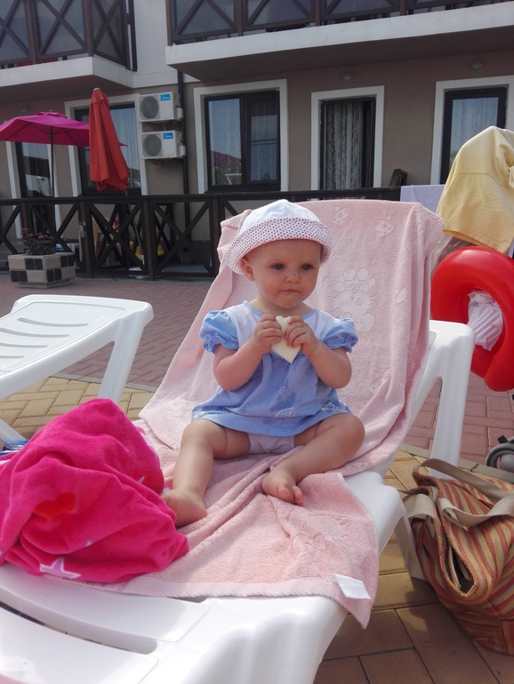 Как мы отдохнули!(рассказы и фото)Напишу небольшой отзыв, вдруг кому понравится. Этот отель я видела снаружи так сказать, когда мы отдыхали рядом в пансионате, потом прочитала несколько отзывов на бб и решила что с малышом нам сюда. Ничего лучшего в Ейске для нас я не нашла, а наши знакомые,приехав на выходные вообще удивились) Бронировала заранее, так как 2 комнатный номеров тут всего 5. А с балконом вообще один. Но еще одна подружка забронировала совсем недавно стандарт, те места есть, хотя народу не мало, и очень много с малышами. При заезде нам был подарок)