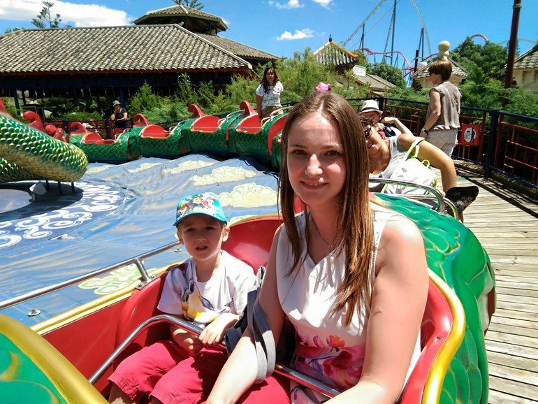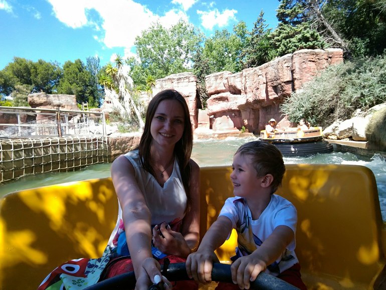 Фотографироваться на аттракционах тяжело, поэтому фотографий немного, есть аттракционы, где дети могут сами кататься, есть, где только в сопровождении взрослых, вся информация указана на стенде перед аттракционом. Самое долгое ожидание было минут 15 в очереди, кататься на Эль Диабло. Можно также купить дополнительный билет, чтоб без очереди проходить, но нам и так было нормально, очереди не большие, много где подходишь и уже в следующий заход запускают. Есть аттракционы, где можно намокнуть, там продаются дождевики и пакеты для ценных вещей, но мы обошлись без них, на солнце быстро подсохли)