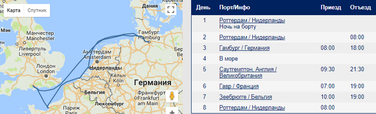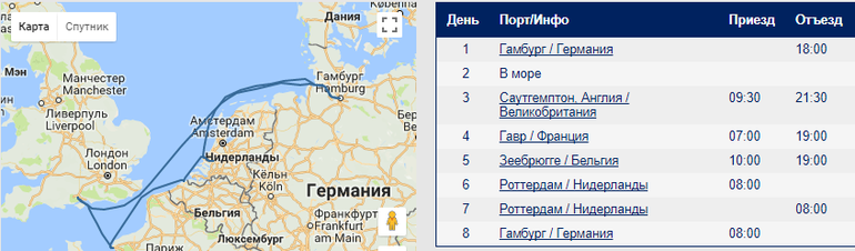 Даты: с 7 по 14 июня 2018 года из Роттердама, с 2 по 9 июня и с 9 по 16 июня из Гамбурга. Ещё с 14 и с 16 июня 2018 года. Есть и в мае, если готовы собраться быстро с 5, 12, 19 и 26го из Гамбурга.