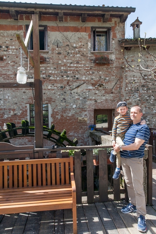 Потом мы поехали обедать в небольшой, но очень интересный ресторан. Он очень популярен у местных жителей. Там подают много видов спаржи, салатов и артишоков. А стоит он на реке с водяной мельницей. При ресторане есть красивый парк, в котором мы с Костиком потом погуляли.