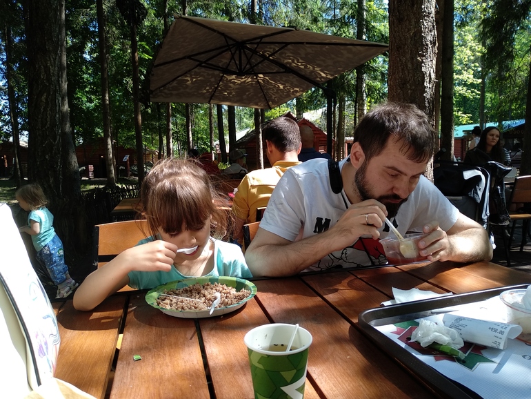 Партизанская деревня.От входа 5,5 км. Симпатичное место,с малышами самое оно. С удовольствием обошли с Машей все землянки. Поели в столовой конечно же борща с гречкой и бутербродов с салом. Хлеб кирпичиками,зачем то в меню сосиски( не по партизански)). В уличной столовой принимают карты)Маше очень понравилось лазить по военной технике). В павильонах расстроилась что нельзя. Очень много павильонов посвященных ВОВ,есть и современные,есть огромный павильон посвященный войне в Сирии,Маша очень удивлина была,что вот прям сейчас и война где то. Я бы наверное с'ездила еще в общем)