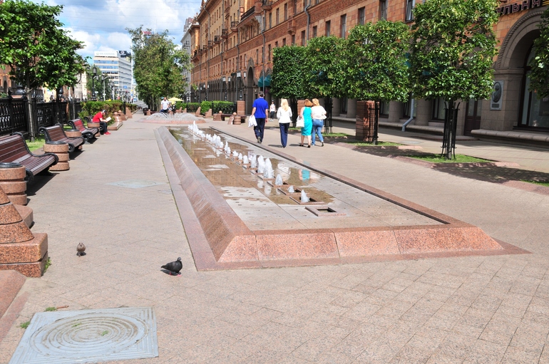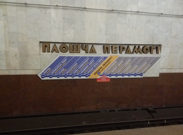Дальше через скверы мы прошли к площади Пободы, обратили внимание на таблички с указание улиц.