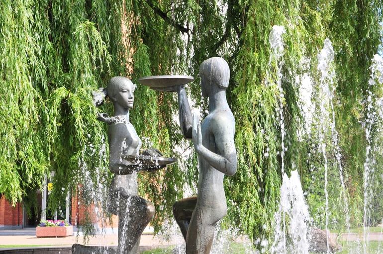 Возле площади Победы мы пообедали в Лидо, заклеяли натёртые ноги и погуляли в парке культуры и отдыха. Парк нас не впечатлил, поэтому единственная из него фотография "Ваня фотографирует белочку".